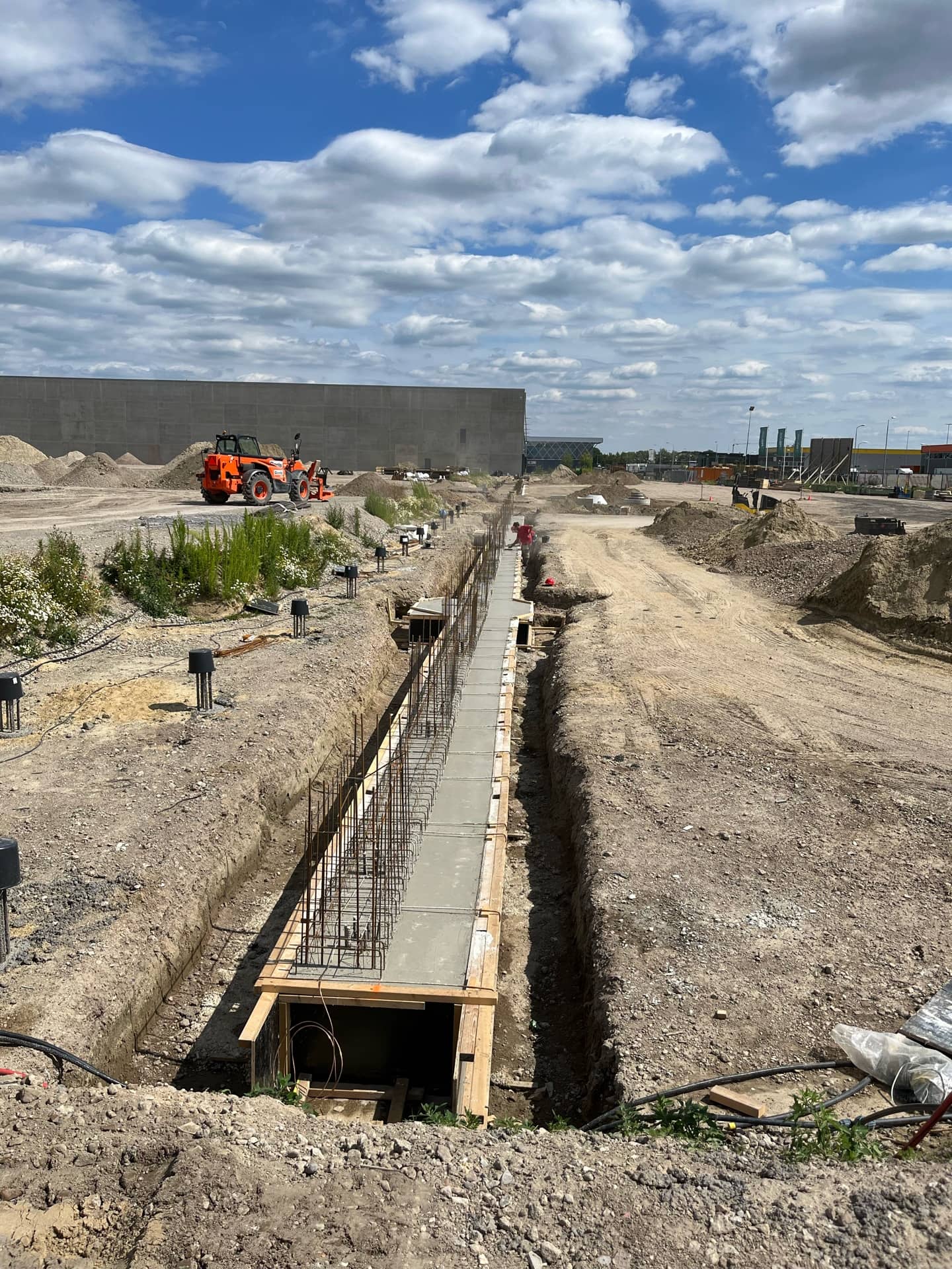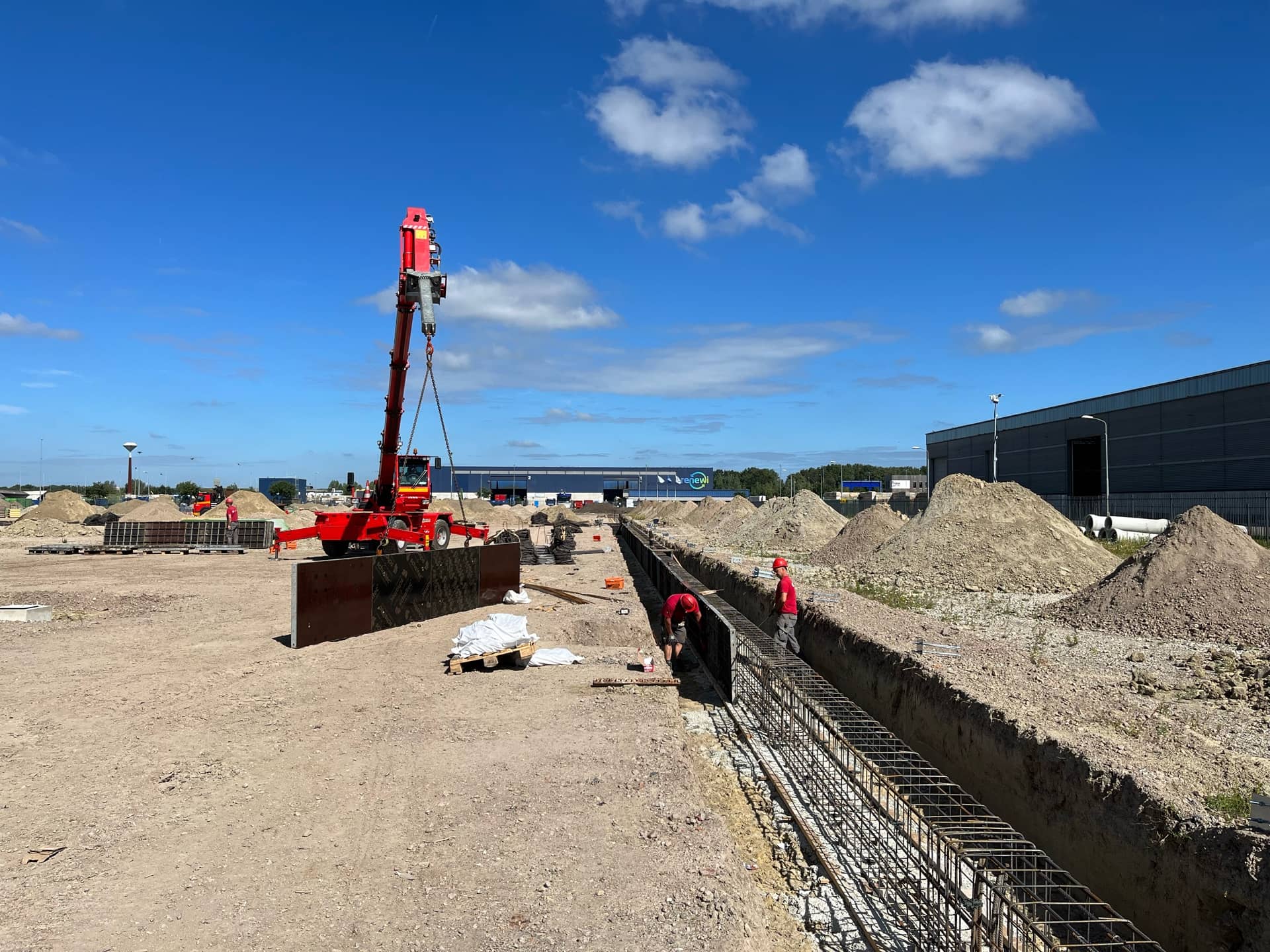 De aankomende weken wordt de fundering verder afgemaakt, worden de vloerpalen gerealiseerd en starten we in week 36 met de staalconstructie.